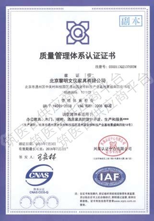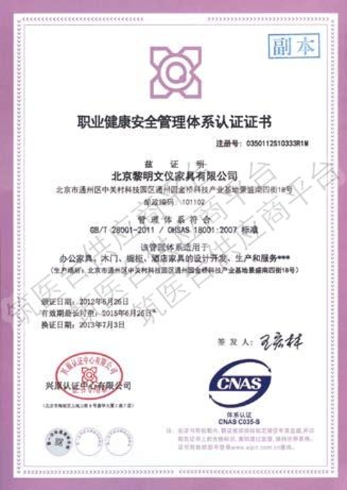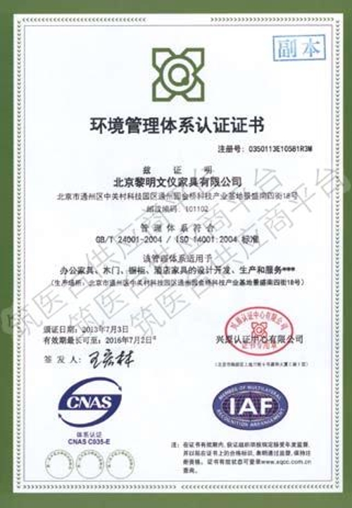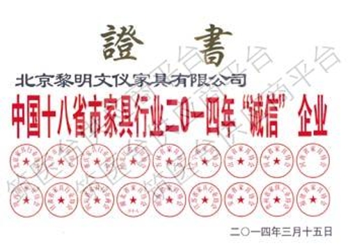 北京黎明文仪家具有限公司创建于1993年,经过近二十年的创业与拼搏,公司规模及经营范围逐步扩大。现已发展成为生产办公家具、天安木门、民用家具、酒店家具、学生公寓家具及人造板等六大系列2000多种产品,集科、工、贸于一体的集团企业。年产值达10亿元,是华北地区最大的木制品供应商。 公司位于北京市通州区中关村科技园区通州园金桥科技产业基地景盛南四街18号,占地12万平方米,厂房面积10万平方米。注册资金10100万人民币。拥有员工1800多人,其中一大批为企业管理、科技开发、市场营销方面的人才。公司从德国、意大利、芬兰引进了代表国际先进水平的木工机械设备,还拥有从原材料到成品的质量检测中心,使黎明家具产品品质有绝对保障。 黎明家具于2002年通过了ISO9001:2000质量管理体系认证,2003年通过了ISO14001:1996环境管理体系认证。2010年公司资信等级评为AAA级。十几年来,黎明家具及其产品屡获殊荣,自2000年起年年被北京市工商局公示为守信企业,是“中国著名品牌”重点推广单位。